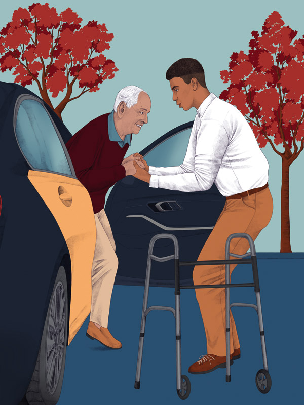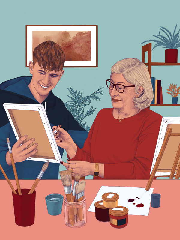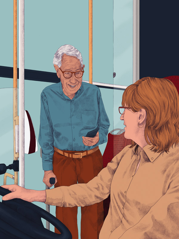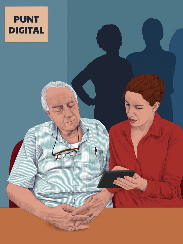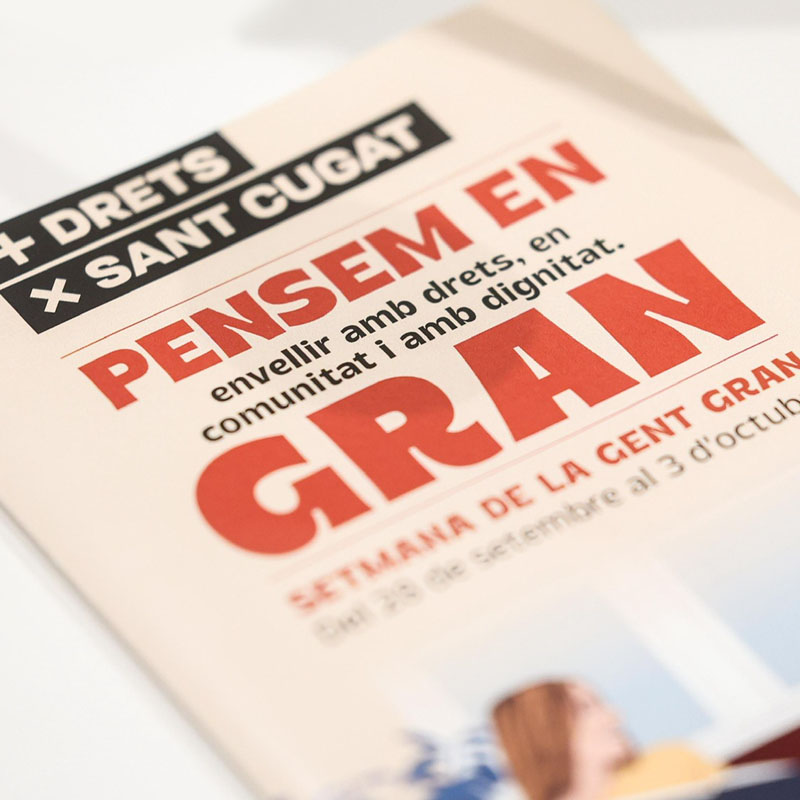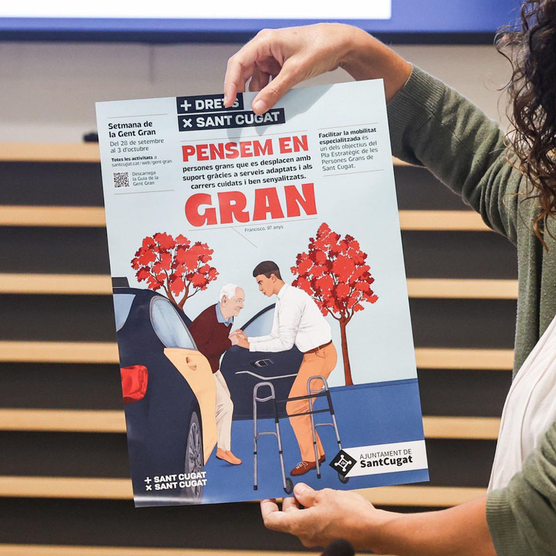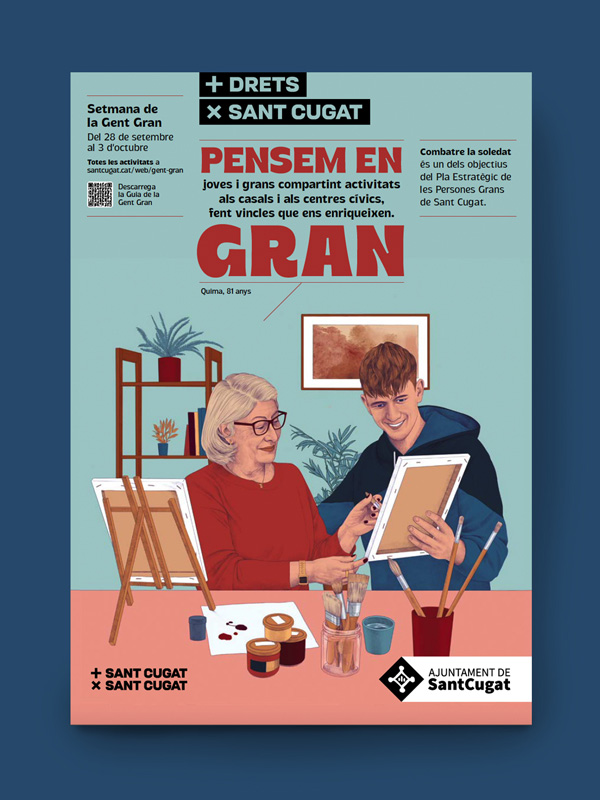 Illustrations for the campaign of Sant Cugat del Vallès Council, Pensem en gran campaign. The poster material shows the improvements in services that have been made dedicated to supporting the elderly.